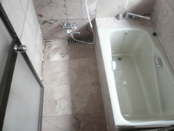 床沈下による入替え工事でした。既存の大理石タイルの壁と床が空いてきてしまっていました。